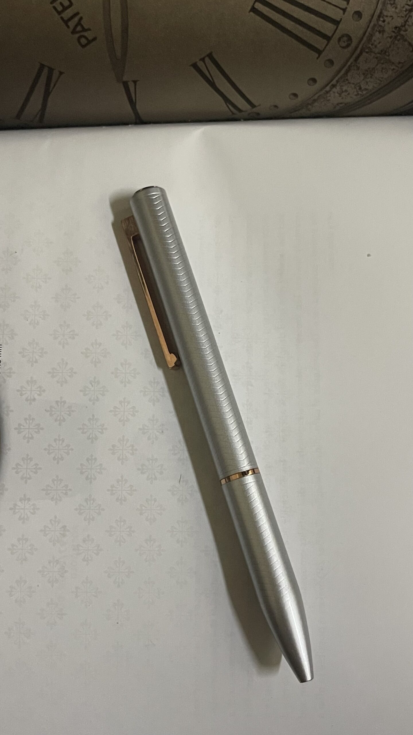 “قلم أنيق بتصميم كلاسيكي فاخر، مصنوع من المعدن عالي الجودة مع لمسات نهائية لامعة تضفي طابعًا راقيًا. يتميز بحجم متوسط ووزن متوازن، مما يجعله مثاليًا للانسياب بسهولة في جيب الكندورة أو البدلة دون أن يسبب أي إزعاج. يعمل بآلية سلسة قابلة للسحب، مما يضمن سهولة الاستخدام دون الحاجة إلى غطاء. طرف الكتابة الدقيق يوفر تجربة كتابة انسيابية واحترافية، ليكون رفيقك المثالي في المناسبات والاجتماعات.”