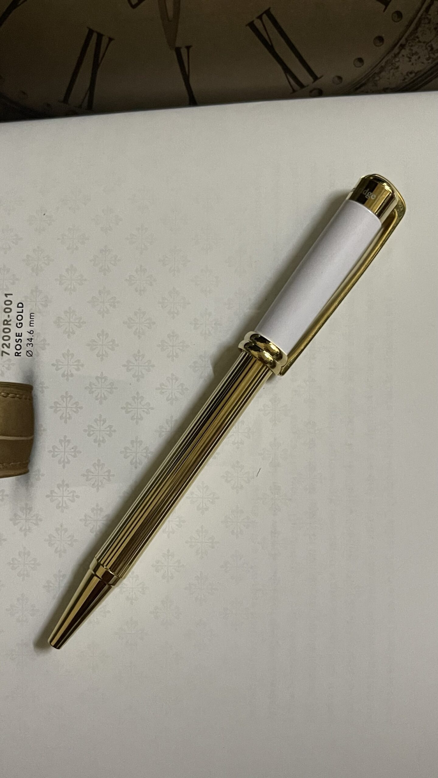 قلم ذهبي(مقبض أبيض) بلون ذهبي وتصميم مخطط