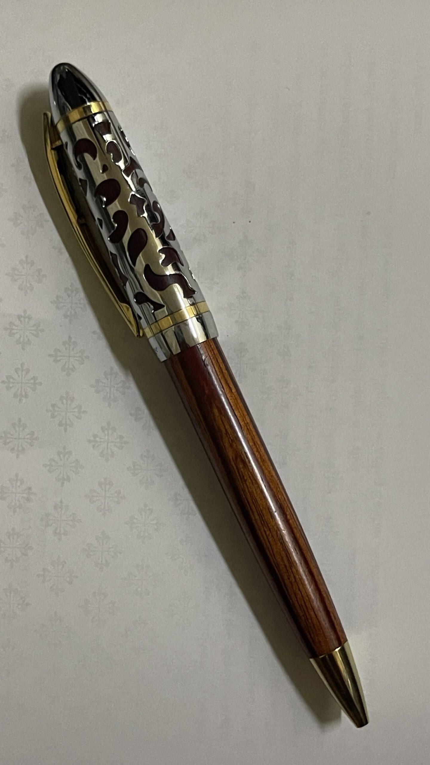 “قلم أنيق بتصميم كلاسيكي فاخر، مصنوع من المعدن عالي الجودة مع لمسات نهائية لامعة تضفي طابعًا راقيًا. يتميز بحجم متوسط ووزن متوازن، مما يجعله مثاليًا للانسياب بسهولة في جيب الكندورة أو البدلة دون أن يسبب أي إزعاج. يعمل بآلية سلسة قابلة للسحب، مما يضمن سهولة الاستخدام دون الحاجة إلى غطاء. طرف الكتابة الدقيق يوفر تجربة كتابة انسيابية واحترافية، ليكون رفيقك المثالي في المناسبات والاجتماعات.”
