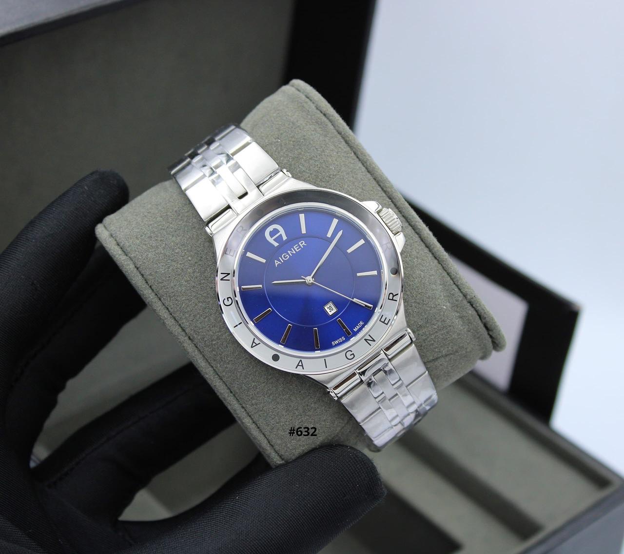 It operates with a precise Kuranz movement and is water-resistant, adding to its functionality. The watch also boasts the iconic Aigner logo on the bezel, enhancing its unique identity. It comes with both a box and a pouch for a complete purchasing experience.