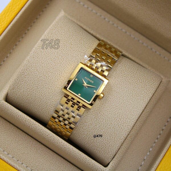 تتميز بسوار مدمج من 8 وصلات مصنوع من الفولاذ، مع مينا منقوش يضفي عليها لمسة من الأناقة. تتوفر الساعة بستة خيارات مختلفة لتناسب جميع الأذواق. مقاومة للماء والصدأ لضمان متانتها. مزينة بطوق يحمل شعار Aigner الشهير.