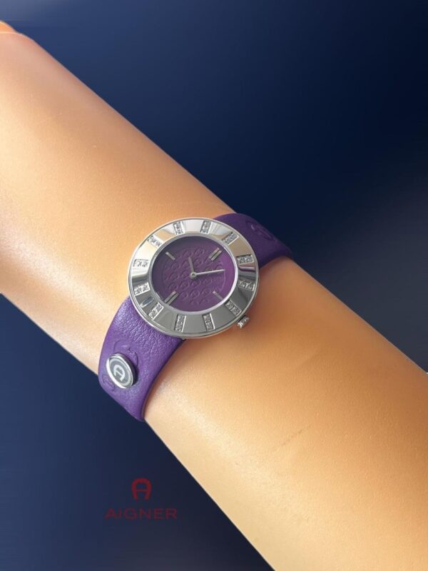 – **Strap:** The watch features a wide leather strap with Aigner logo engravings, adding a luxurious touch to the overall look.