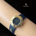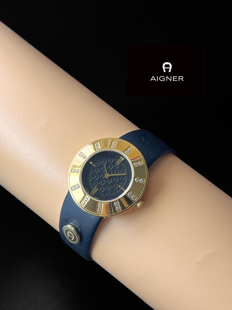 – **Strap:** The watch features a wide leather strap with Aigner logo engravings, adding a luxurious touch to the overall look.
