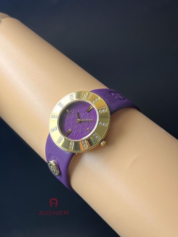 Aigner Women’s Watch – Purple Dial, Gold Bezel, Purple Strap