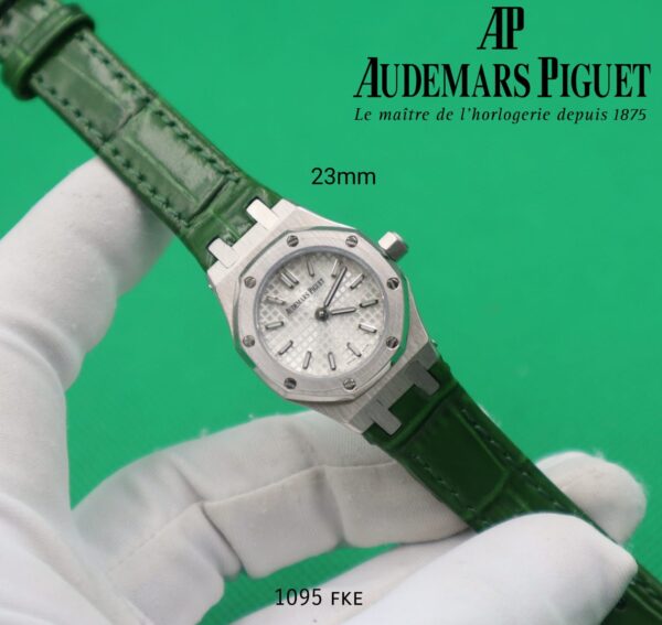 رغم صغر حجمها، تمثل Royal Oak Mini رمز الأناقة والأنوثة. الإضاءة الليلية تجعلها عملية، وسوار الكروكودايل يضيف لمسة فاخرة، لتكون رفيقة كل لحظة من النهار إلى السهرات، بجانب دقة الأداء التي تعكس الذوق الرفيع للمالكة.
