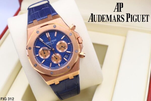 This replica of the Audemars Piguet Royal Oak Chronograph features a 39mm diameter with a sophisticated chronograph function and a date display. The watch is available with either a leather or rubber strap, offering versatility and comfort. It includes night illumination for clear visibility in low light conditions and is water-resistant when the crown is properly closed. The timepiece is available in more than four color options, catering to various preferences.
