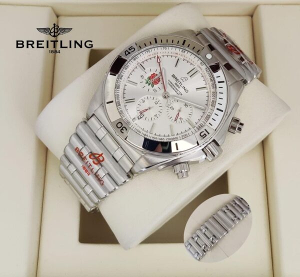 كرونومات أوتوماتيك GMT 40 هو ساعة فاخرة من ماركة بيترلينج. تتميز بوجود ساعة إيقاف (كرونوغراف)، توقيت مدمج للمناطق الزمنية (وظيفة GMT)، وعقرب ثوانٍ لقياس الوقت بدقة، بالإضافة إلى تعقيدات للتاريخ والشهر. تأتي الساعة بسوار من الصلب مع حلقات مدمجة مصنوع من الفولاذ المقاوم للصدأ عالي الجودة، وتحتوي على إضاءة ليلية للأرقام والطوق لسهولة القراءة في الضوء الخافت. الساعة مقاومة للماء وتأتي مع صندوق مميز، كتالوج، بطاقة، وحقيبة تحمل شعار العلامة. الساعة متوفرة بخمسة ألوان مختلفة.