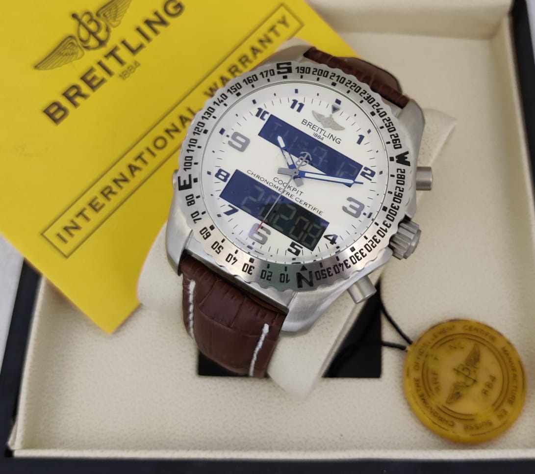 Be the first to review “Breitling Professional Emergency 44mm White Dial, Silver Case, Brown Leather Strap with White Stitching Replica”