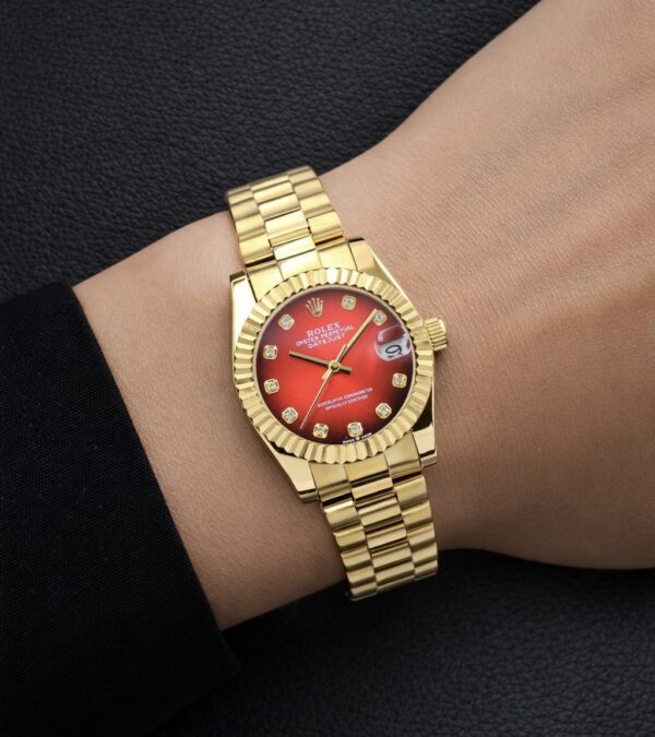 Rolex Datejust 31mm – Gradient Red Dial (Full Gold) – Automatic – Fluted Bezel – Replica