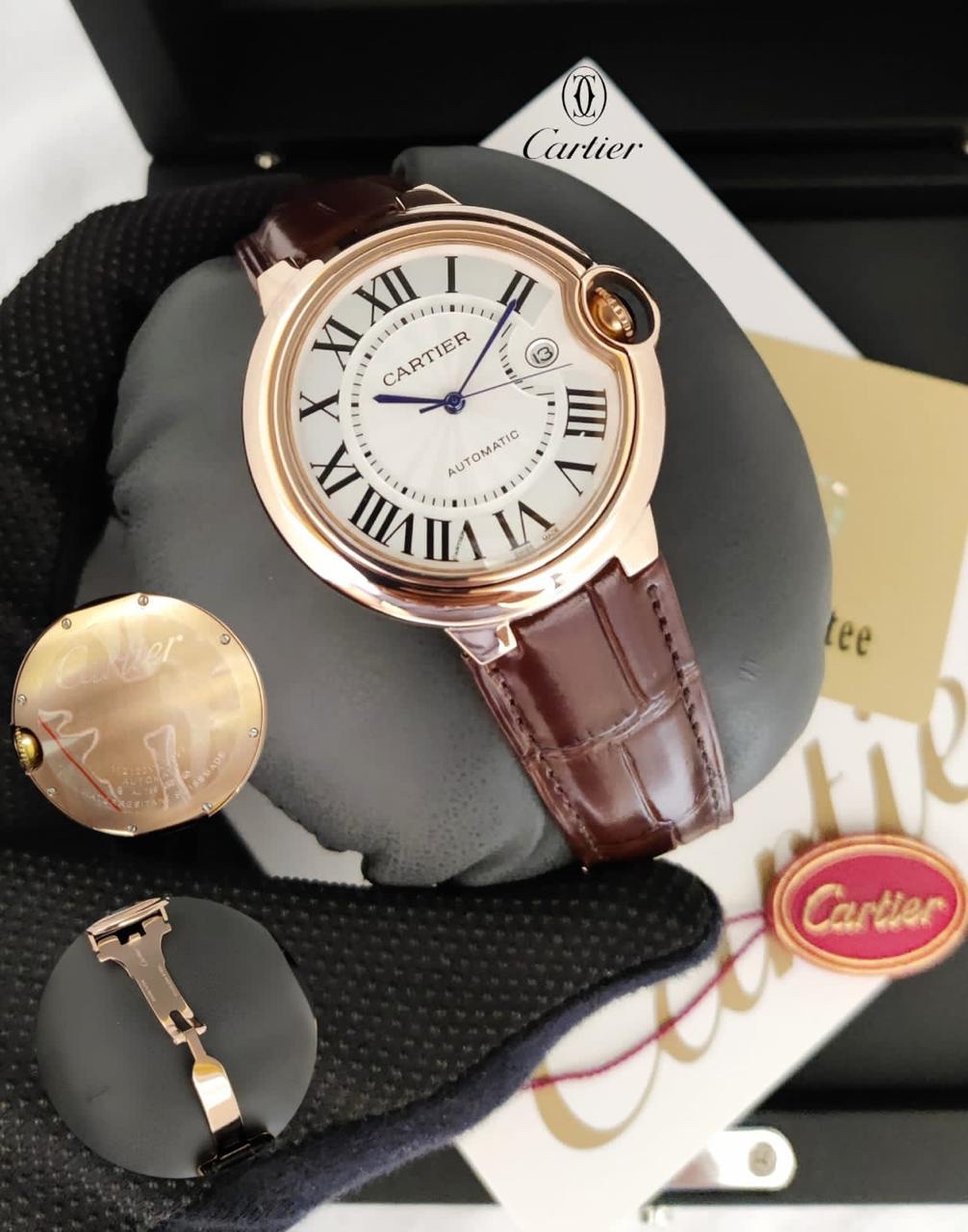 Be the first to review “CARTIER BALLON BLEU 42MM,white dial rose gold bezel brown leather”