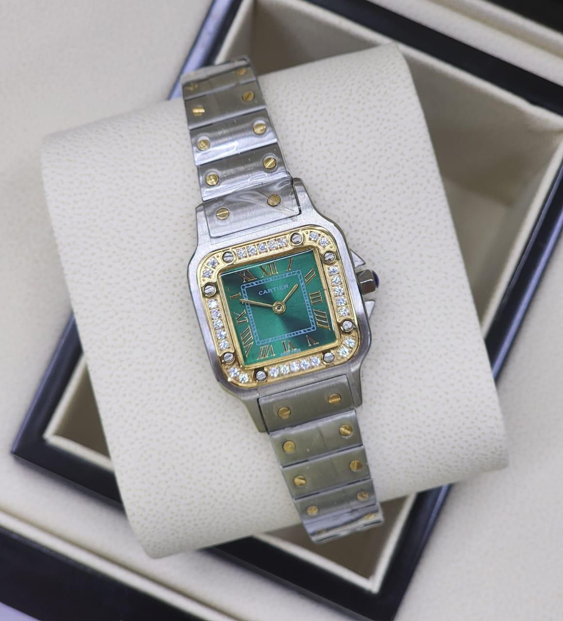 تتميز هذه الساعة بتصميم رائع مع أحجار صناعية وتفاصيل دقيقة، مما يجعلها إضافة مثالية لمجموعة إكسسواراتك. على الرغم من أنها تقليد، فإن ساعة Cartier Santos de Cartier ستضيف لمسة من الأناقة والتميّز إلى كل لحظة، سواء كنت ترتدينها في المناسبات الخاصة أو الاستخدام اليومي.