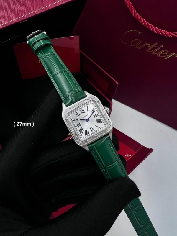 ساعة Cartier Demo 27 مم تقليد تتميز بتصميم أنيق وفاخر، وتحتوي على عدة عناصر تبرز جمالها وفرادتها:
