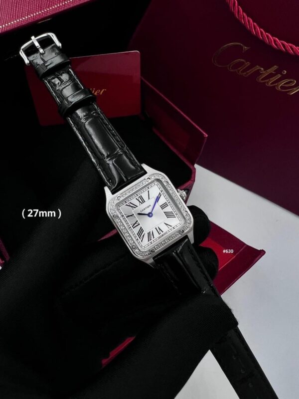 ساعة Cartier Demo 27 مم تقليد تتميز بتصميم أنيق وفاخر، وتحتوي على عدة عناصر تبرز جمالها وفرادتها: