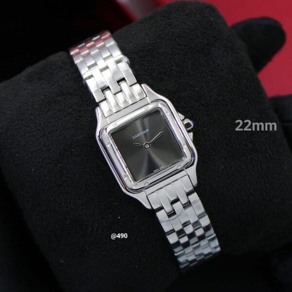 This luxurious Cartier Panthère Small stone replica features a 22mm case, offering a refined and elegant size. The case is crafted from 904L stainless steel, renowned for its exceptional resistance to corrosion and its stunning shine that closely resembles the look of white gold.