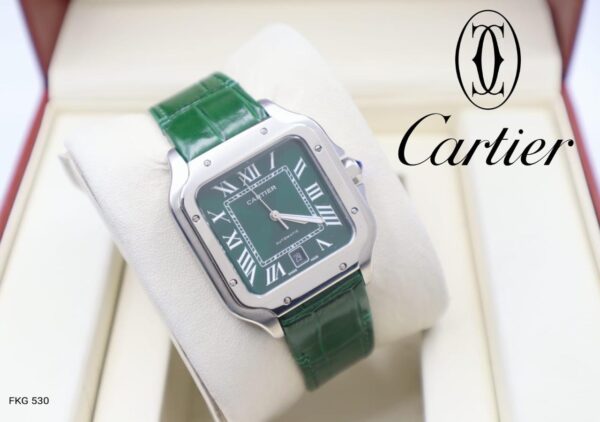 Cartier Santos، green dial and and green leather strap