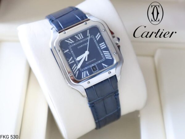 Cartier Santos، blue dial and blue leather strap