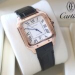 Be the first to review “Cartier Santos، white dial and rose gold bezel black leather strap”