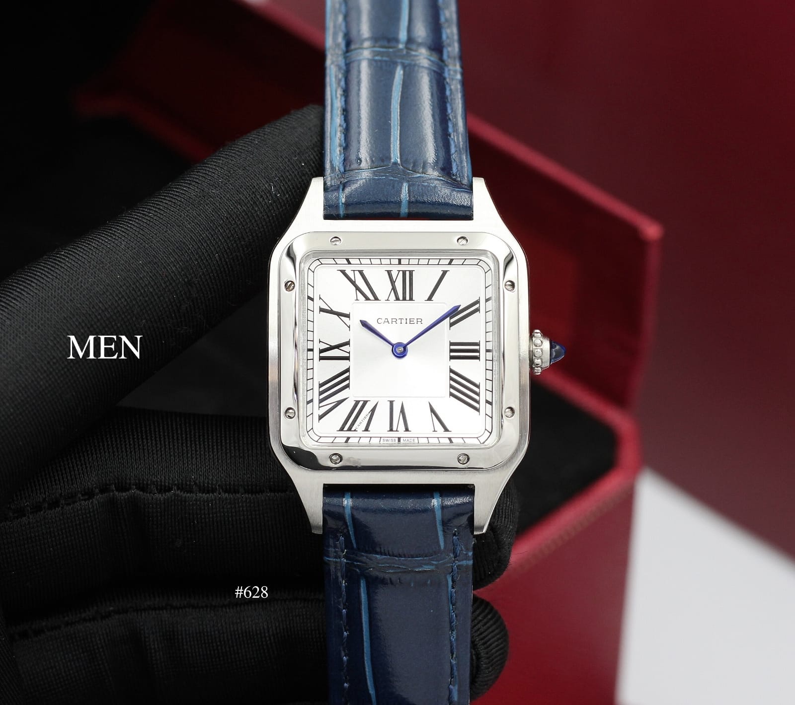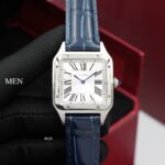 Cartier Santos Duomo white dial navy blue leather