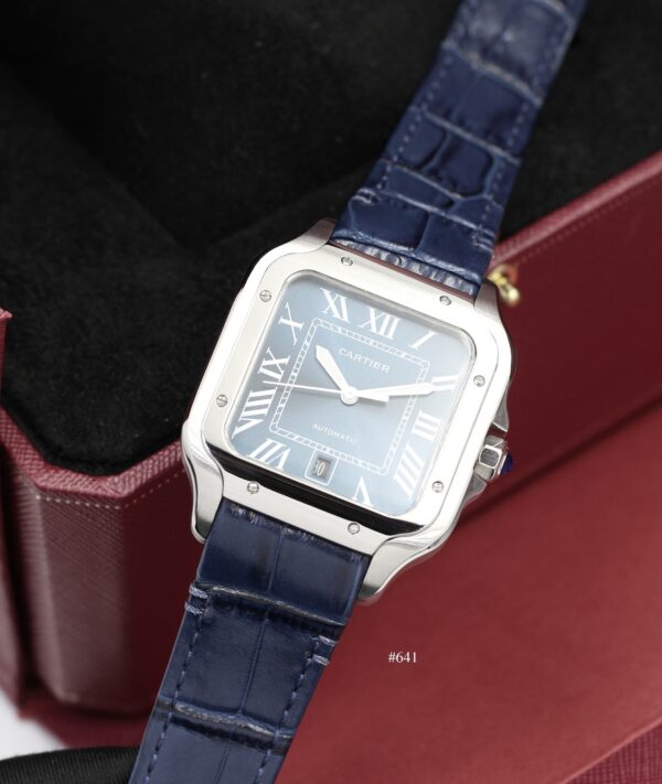 Cartier Santos, blue dial and blue leather strap