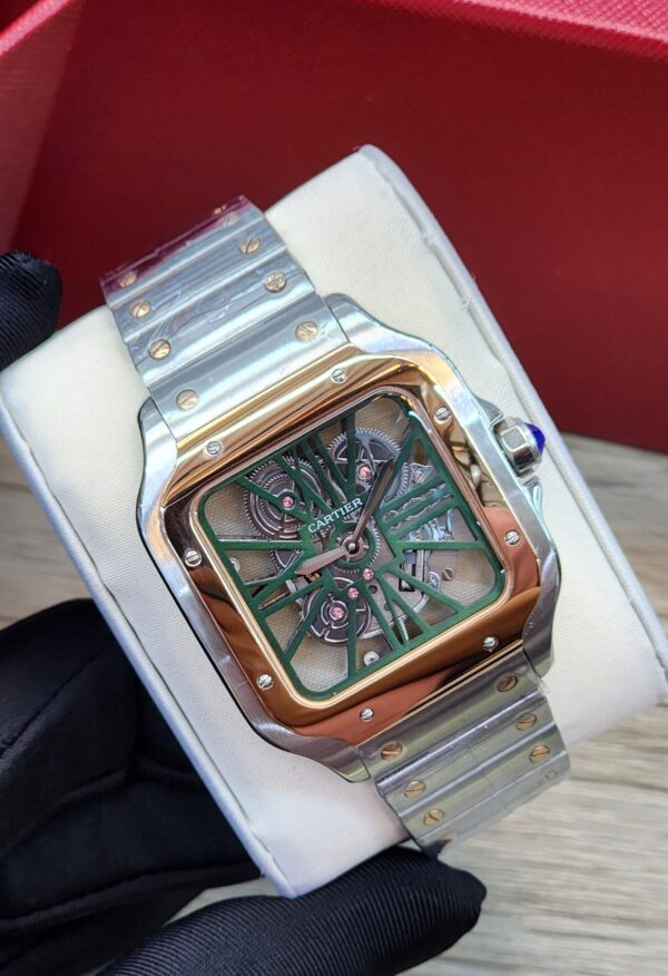 Cartier Santos, green skeleton dial and Rose gold bezel Silver Perselect
