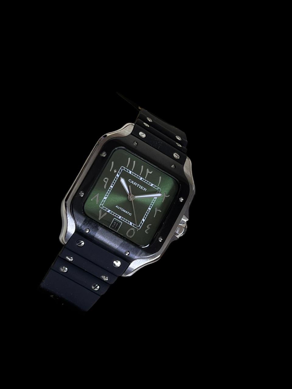 Cartier Santos, green dial and black rubber strap