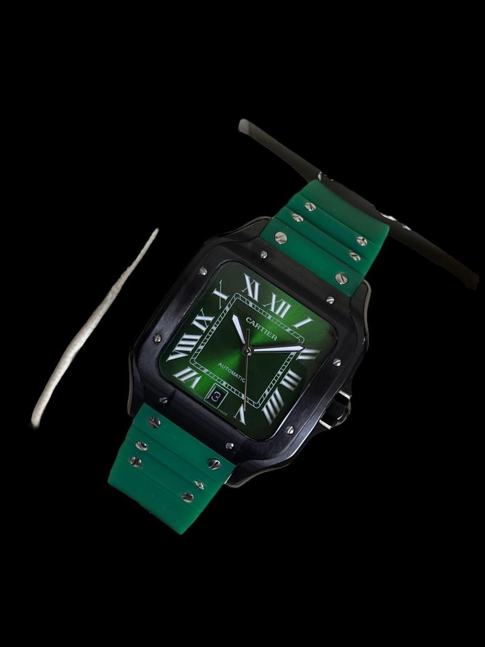 Cartier Santos, green dial and green rubber strap