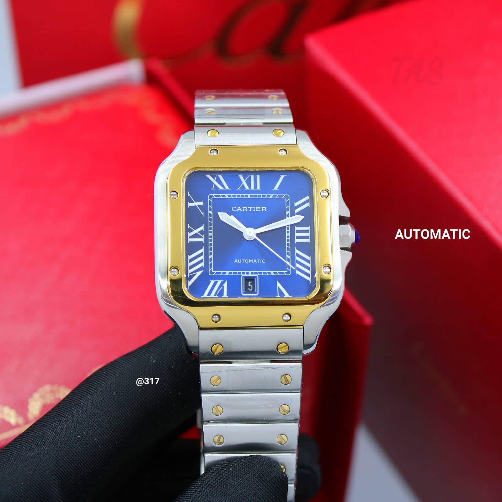 Cartier Santos, blue dial and gold bezel