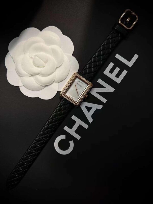 ساعة Chanel BOY·FRIEND Moyen Modèle بتصميم راقٍ وإحساس فاخر، تأتي بكيس مصنوع من الستانلس ستيل مع سوار من جلد العجل يمنحها مظهراً كلاسيكياً أنيقاً.