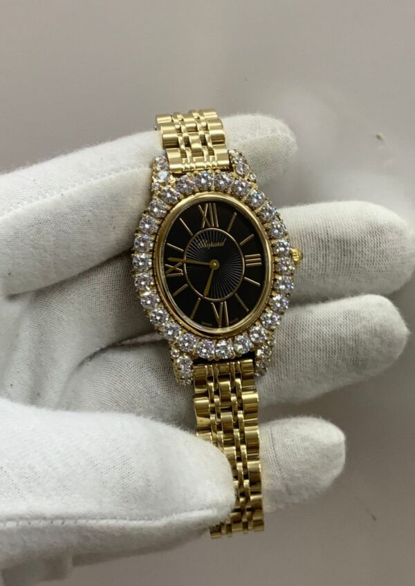 A Chopard women’s watch with an elegant and delicate design, featuring intricate details.