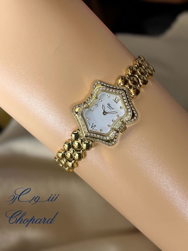 A Chopard women’s watch with an elegant and delicate design, featuring intricate details.