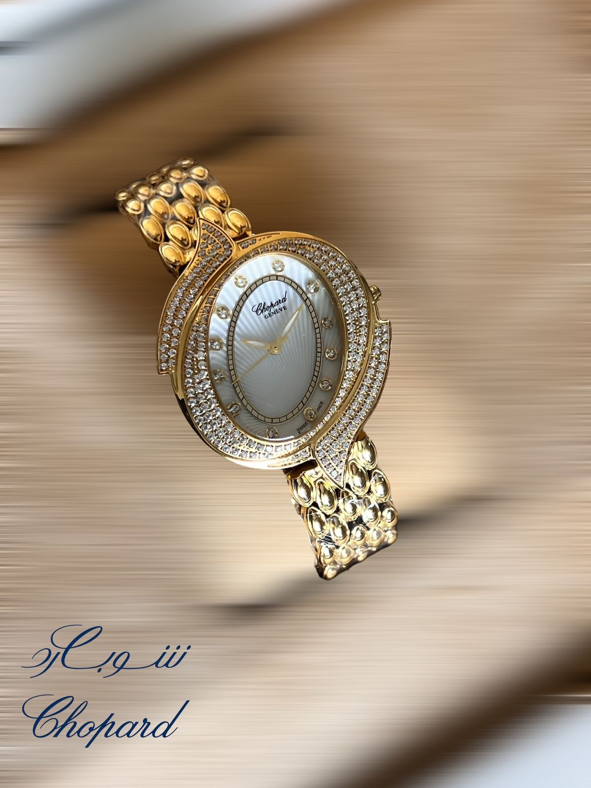 ساعة شوبارد نسائية بتصميم أنيق وناعم، تتميز بتفاصيل دقيقة.