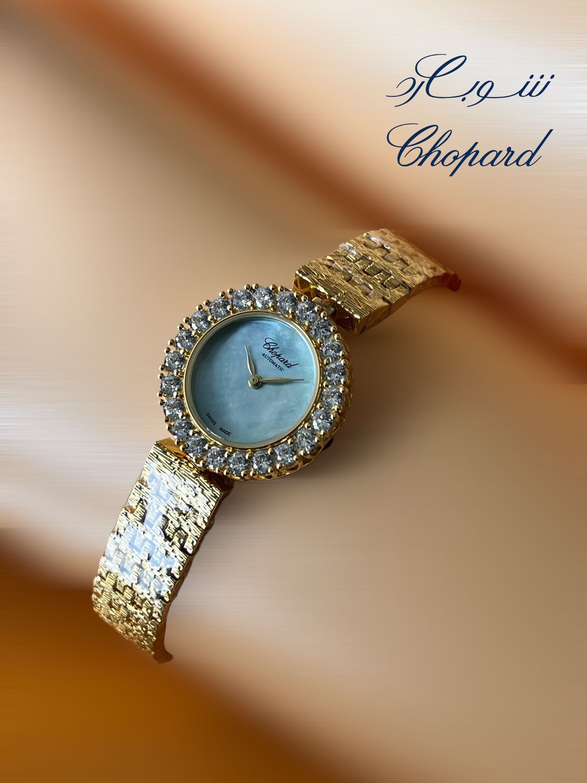 ساعة شوبارد نسائية بتصميم أنيق وناعم، تتميز بتفاصيل دقيقة.