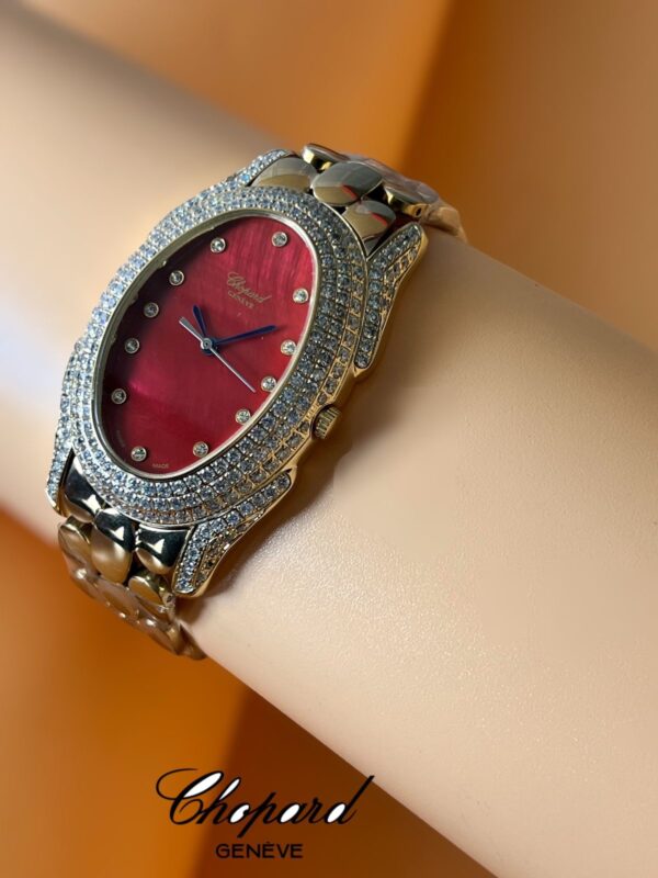 A Chopard women’s watch with an elegant and delicate design, featuring intricate details.
