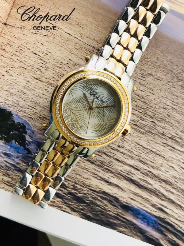 A Chopard women’s watch with an elegant and delicate design, featuring intricate details.