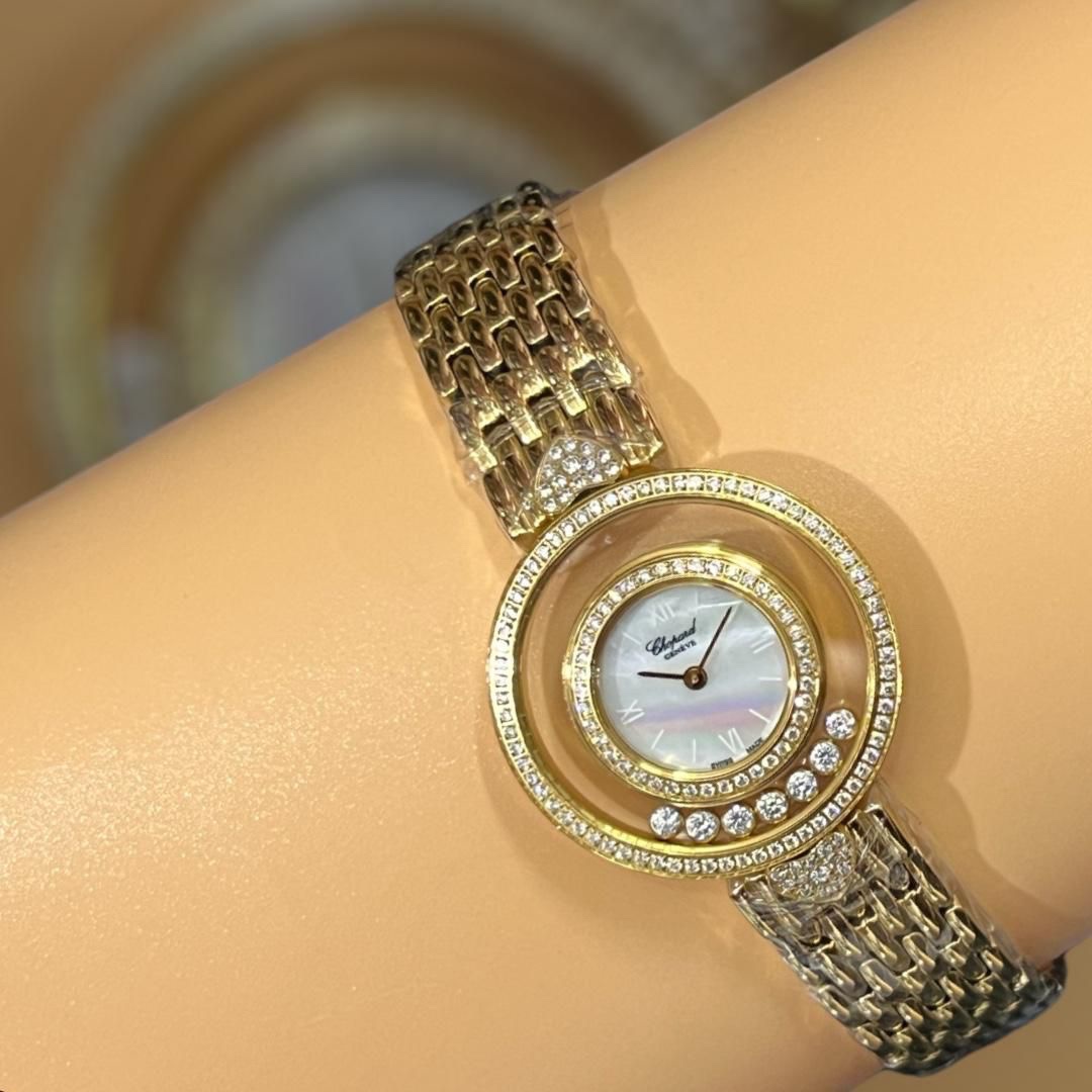 A Chopard women’s watch with an elegant and delicate design, featuring intricate details.