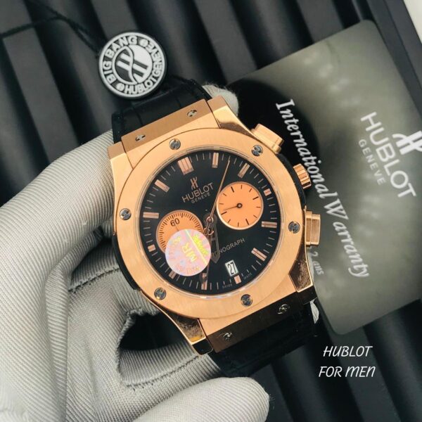Be the first to review “Classic Fusion Chronograph, black dial, rose gold with a black leather strap”