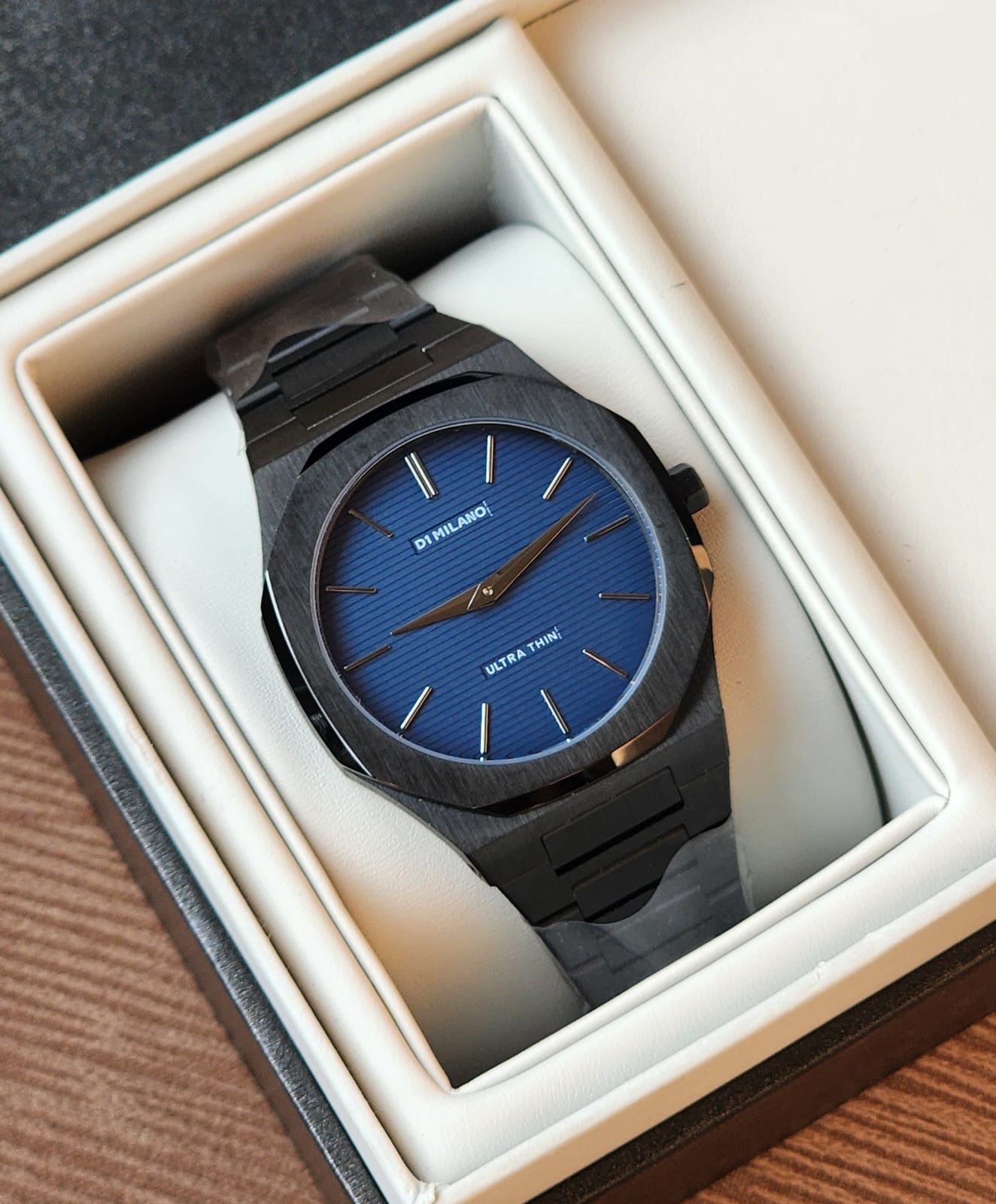 The D1 Milano Ultra Thin 40mm features a clean, specification-focused design with a modern and refined look. The octagonal case gives the watch a distinctive geometric character, while the ultra-thin profile ensures perfect wrist fit and all-day comfort.
