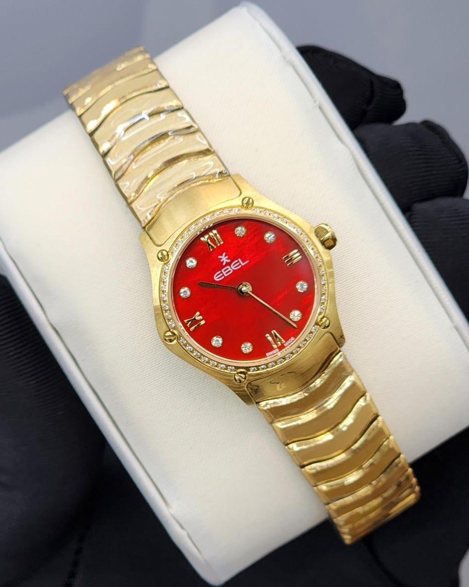 The Ebel Sport Classic 25mm Mini is a stunning timepiece that combines elegance and sophistication in a compact design. Its Roman numerals and sparkling stones on the dial add a timeless charm, while the bezel, adorned with synthetic stones, enhances its luxurious appeal. This watch exudes refinement, making it a perfect accessory for those who appreciate subtle yet striking beauty. Crafted with water resistance and rust-resistant materials, this watch ensures durability while maintaining its elegant look. Its sleek design fits comfortably on your wrist, adding a touch of sophistication to any outfit. Whether you’re attending a special event or enhancing your daily style, this watch is a must-have. It also comes with all the necessary accessories, making it a complete package. Treat yourself or a loved one to the timeless allure of the Ebel Sport Classic and make a statement of true sophistication. Arabic: ساعة إيبل سبورت كلاسيك 25 ملم ميني هي قطعة مدهشة تجمع بين الأناقة والرقي في تصميم مضغوط. تضيف الأرقام