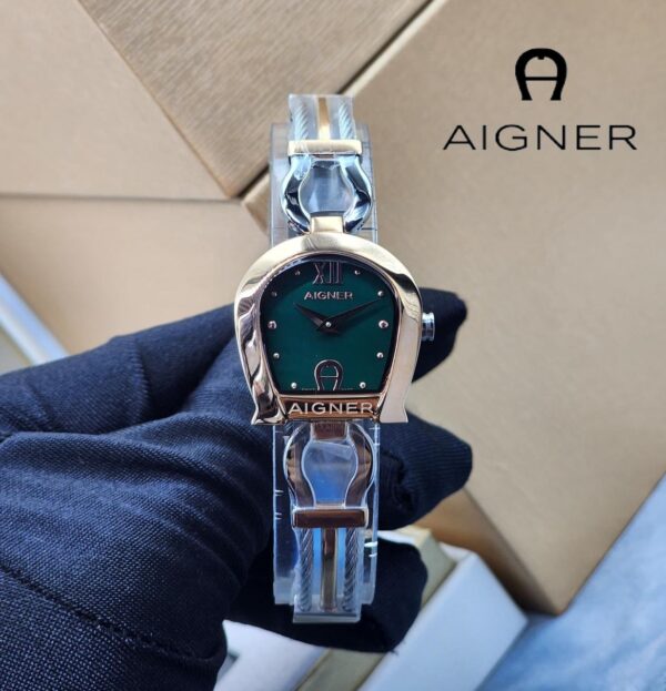 his elegant Aigner women’s watch, with a 28mm case, combines classic and sophisticated design, perfect for every woman who loves elegance. The watch features a sturdy metallic strap in a luxurious color, adorned with refined details, and a distinctive crown design that adds a touch of modern charm. At the 12 o’clock position, Roman numerals appear with high craftsmanship, adding a classic touch of luxury to the design.