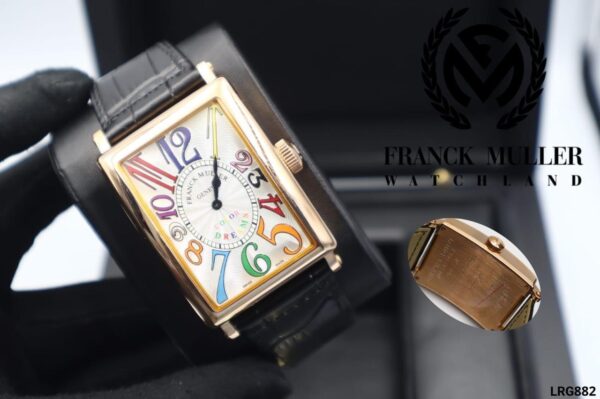 ساعة Franck Muller Color Dreams Long Island نسخة تقليد فاخرة تأتي بشكل مربع فريد. يتميز هذا الموديل بأنه يخرج عن النمط التقليدي لساعة فرانك مولر، مقدماً لمسة مميزة على تصميمات العلامة التجارية الكلاسيكية.