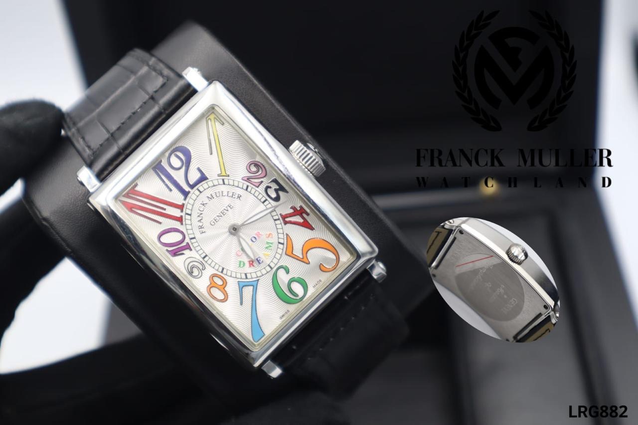 ساعة Franck Muller Color Dreams Long Island نسخة تقليد فاخرة تأتي بشكل مربع فريد. يتميز هذا الموديل بأنه يخرج عن النمط التقليدي لساعة فرانك مولر، مقدماً لمسة مميزة على تصميمات العلامة التجارية الكلاسيكية.