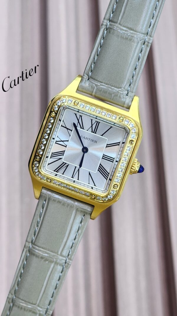 تألق بإطلالة فاخرة مع ساعة Cartier دمو المصممة للجنسين، التي تجمع بين الأناقة الفائقة والجودة العالية. بقطر 34mm، تضفي الساعة مظهرًا أنيقًا وجذابًا على معصمك، بينما يضيف الحجر الأنيق لمسة من الفخامة والتألق.