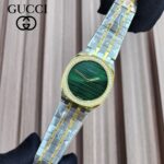 Shine with the luxurious **Gucci women’s watch** that combines elegance and high quality. This watch is adorned with sparkling **zircon stones**, adding a touch of glamour to your look. Crafted with precision as a **replica**, it caters to the refined taste of luxury lovers. The watch is made from **stainless steel**, resistant to rust for durability, and is **water-resistant**, making it perfect for a modern lifestyle. It features **quartz movement technology**, known for its high accuracy. With a **30mm** diameter, this watch is ideal for elegant looks on any occasion.