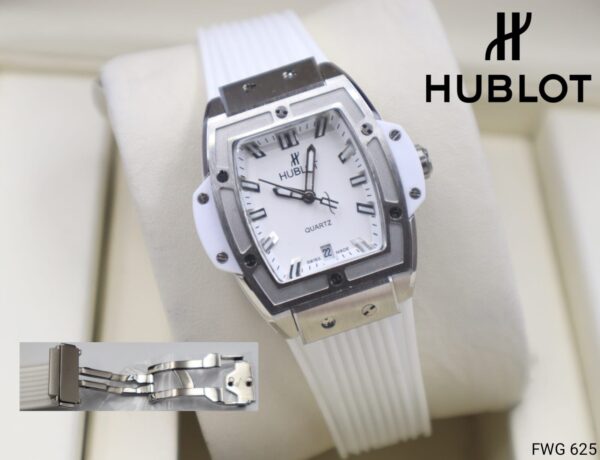 The bright beige dial, featuring sleek markers and a date display at 6 o’clock, adds a touch of sophistication. Meanwhile, the dual strap of white rubber and beige alligator leather ensures both comfort and luxury.