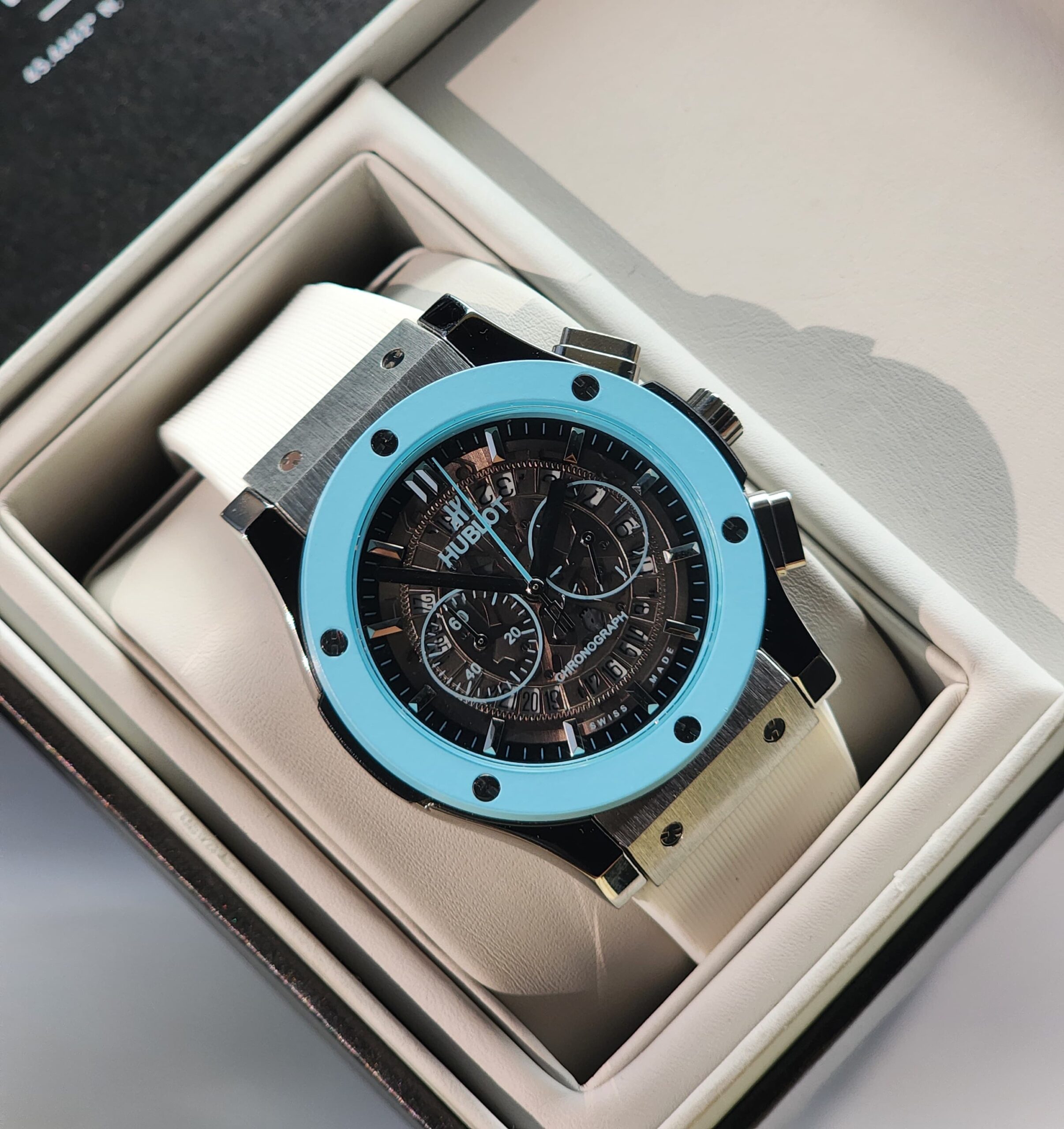 The Hublot Classic Fusion is a luxury timepiece that perfectly blends elegance with superior performance. It features a durable steel case and a highly comfortable rubber strap. The watch includes two chronograph sub-dials, along with displays for date, day, hours, minutes, and seconds. Powered by a precise battery movement, it is also water-resistant, making it ideal for daily wear and active lifestyles. The Hublot logo is proudly displayed on the watch’s hand, adding a touch of sophistication. The watch comes with all necessary accessories for a complete premium experience.