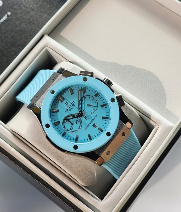 The Hublot Classic Fusion is a luxury timepiece that perfectly blends elegance with superior performance. It features a durable steel case and a highly comfortable rubber strap. The watch includes two chronograph sub-dials, along with displays for date, day, hours, minutes, and seconds. Powered by a precise battery movement, it is also water-resistant, making it ideal for daily wear and active lifestyles. The Hublot logo is proudly displayed on the watch’s hand, adding a touch of sophistication. The watch comes with all necessary accessories for a complete premium experience.