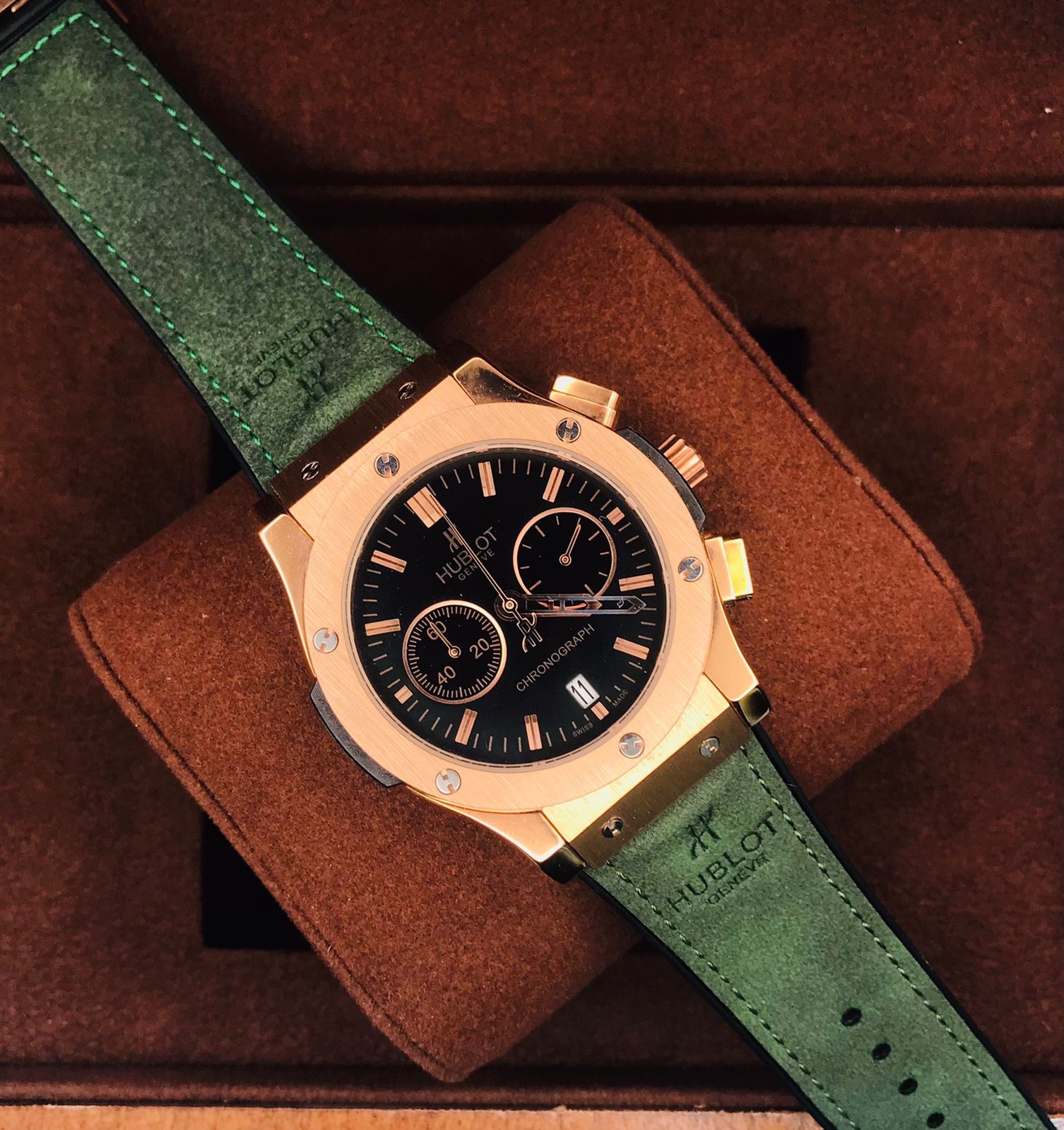 Hublot Classic Fusion Chronograph ,rose gold black dial Green velvet