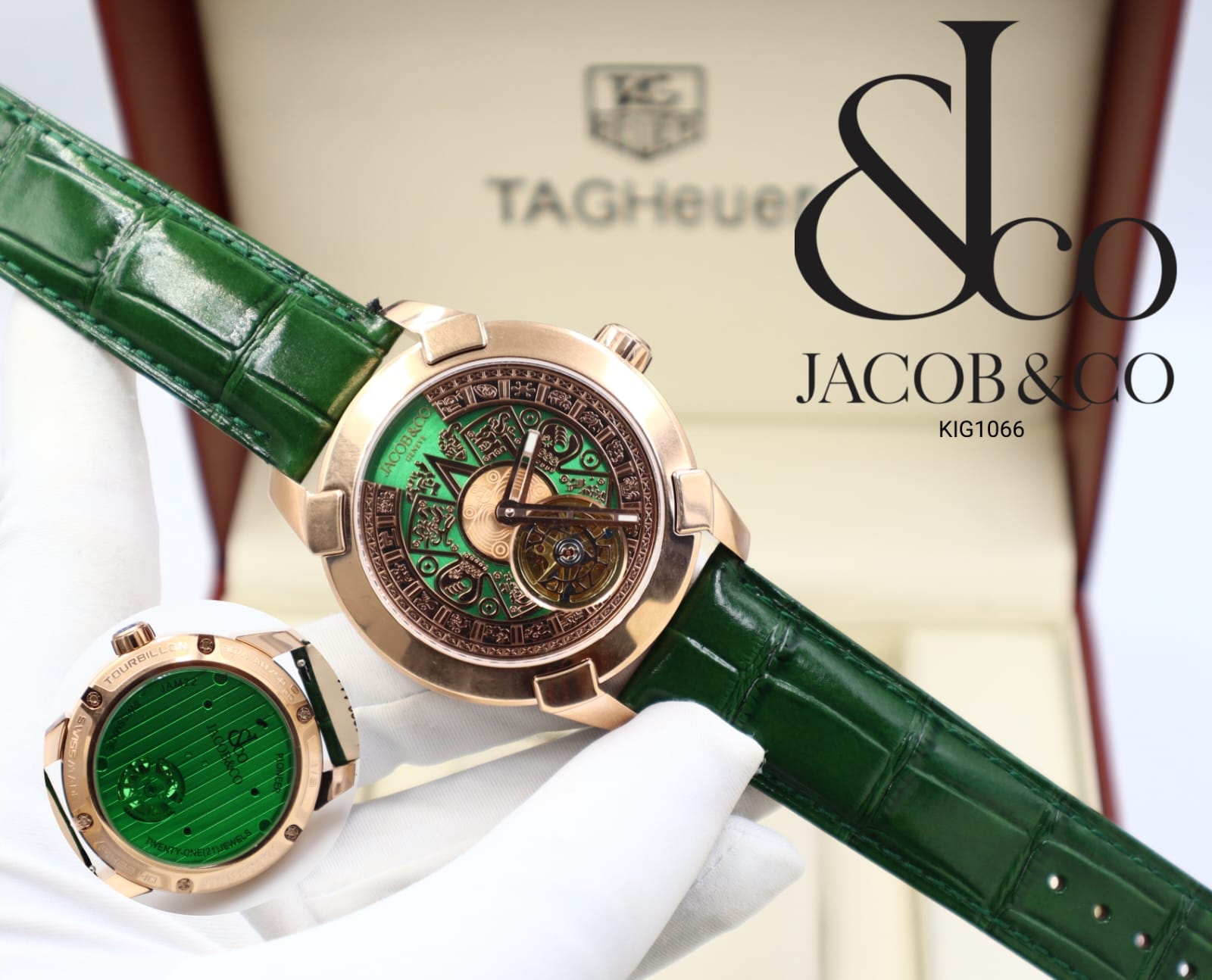 Be the first to review “Jacob & Co Pioneer Tourbillon Aztec Calendar — 45.5mm Green Dial, Green Strap, Rose Gold Case Replica”