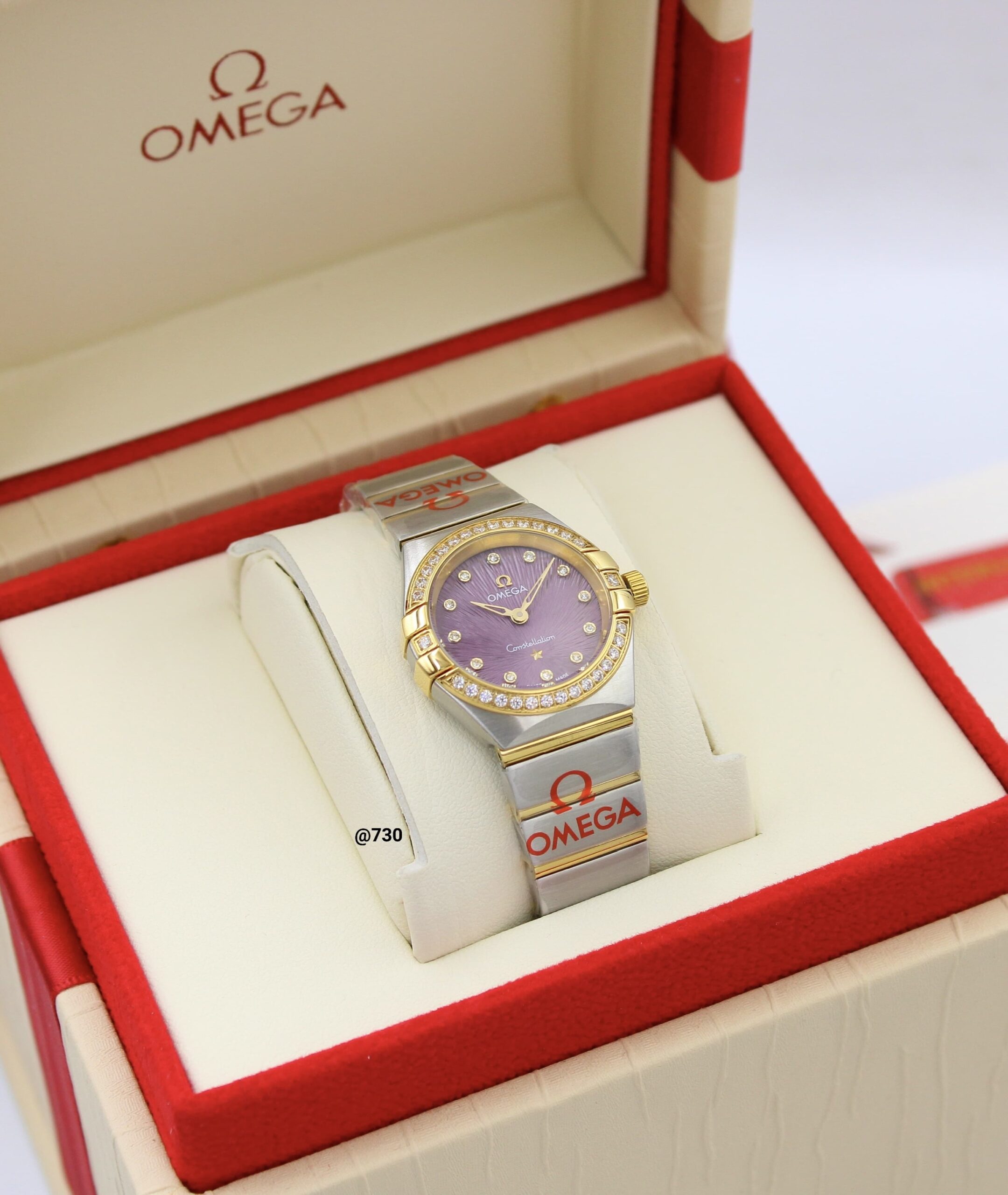 تتميز ساعة أوميغا كونستليشن بتصميم فاخر مع إطار من الفولاذ المقاوم للصدأ مرصع بالأحجار، بالإضافة إلى علامات الساعات المصنوعة من الأحجار الكريمة. هذا الموديل بقياس 27 ملم يأتي بعدة خيارات وألوان متنوعة تناسب مختلف الأذواق، سواء للاستخدام اليومي، العمل، أو المناسبات الخاصة.