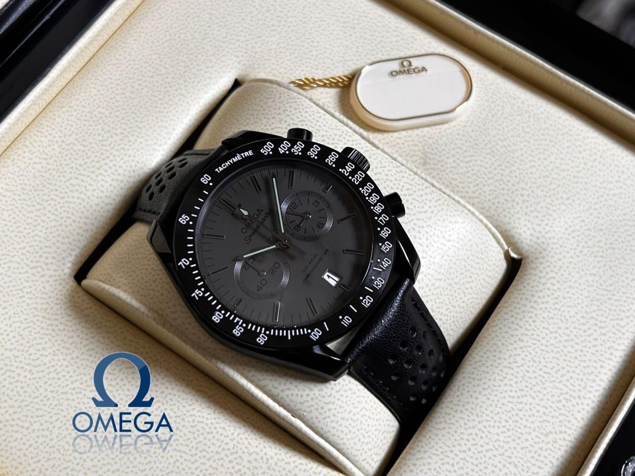Omega Speedmaster 57 Co-Axial Chronograph in dark gray dial black leather